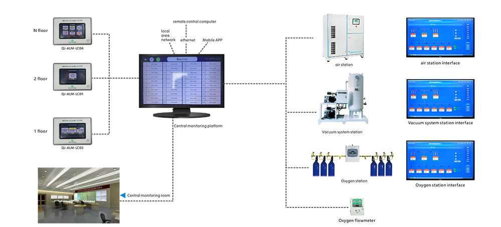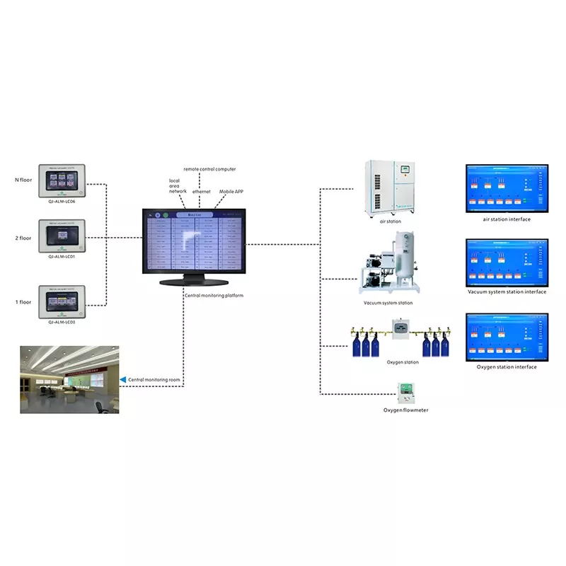 6. مرکزی نگرانی کے نظام کے ایتھرنیٹ سے منسلک ہونے کے بعد ، ریموٹ آپریشن اور نیٹ ورک کی شراکت کا ادراک کیا جاسکتا ہے۔ معیاری RS485 انٹرفیس تمام ریئل ٹائم الارم سگنلز اور پریشر ڈیٹا آؤٹ پٹ فراہم کرتا ہے